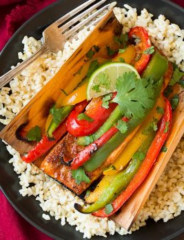 Chipotle Rubbed Salmon with Bell Peppers in Cedar Paper